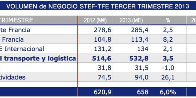El grupo especializado en logística del frío Stef, consolida un incremento del 6% durante el tercer trimestre de 2013. La cifra de negocio acumulada a 30 de septiembre de 2013 asciende a 1.915 millones de euros frente a los 1.834 de 2012, lo que ha supuesto un aumento del 4,4 %.