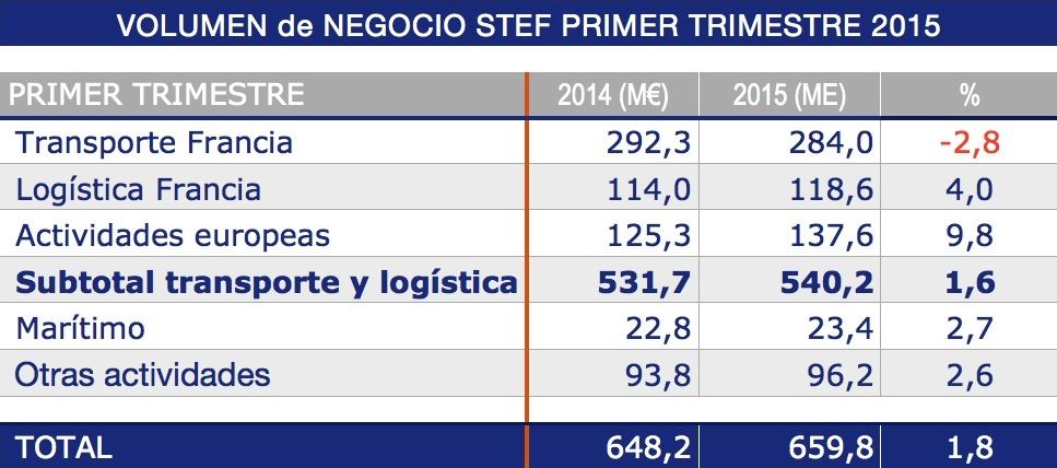 La cifra de negocio de Stef, operador especializado en la logística del frío, ha aumentado un 1,8% en el primer trimestre de 2015, debido a la buena dinámica de sus actividades europeas y a que el consumo alimentario ha mejorado en todos los países donde el grupo está presente.
