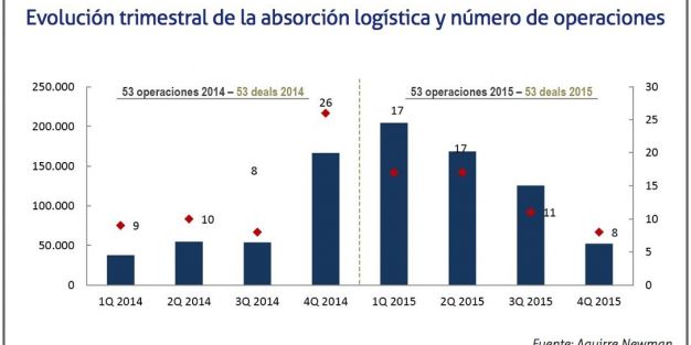 Durante el último trimestre de 2014, la demanda de espacios logísticos ha superado los 124.178 m2, lo que supone triplicar los metros absorbidos en el mismo periodo de 2014, que fueron de 41.195m².