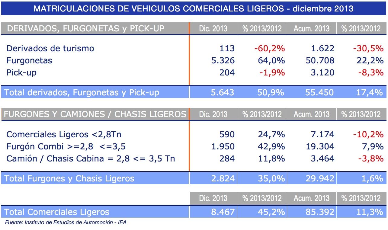 Diciembre ha cerrado el año con un crecimiento del 45,2% en el mercado de vehículos comerciales y ha puesto el broche a la tendencia al alza que se viene registrando desde el mes de abril, tras nueve meses de crecimiento consecutivo, con el mayor crecimiento de 2013.