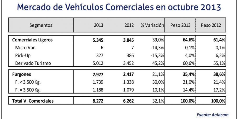 Así las cosas, el mercado ha crecido en lo que va de 2013 un 6,8%. La caída de pickups (-12%) y furgones (-3,2%), no ha empañado los buenos números de las micro van (76,4%) y los derivados del turismo (15%).