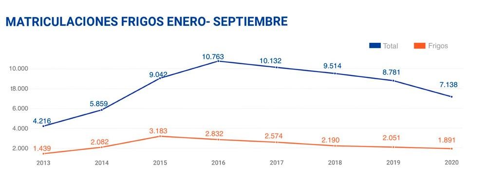 El segmento de frigos acumula en estos nueve meses un total de 1.891 unidades, tan sólo un 7,8% por debajo de las 2.051 registradas a estas alturas del año pasado.