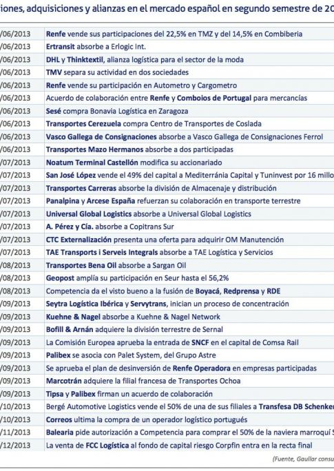 fusiones adquisiciones y alianzas en el mercado español del transporte y la logística en el segundo semestre de 2013