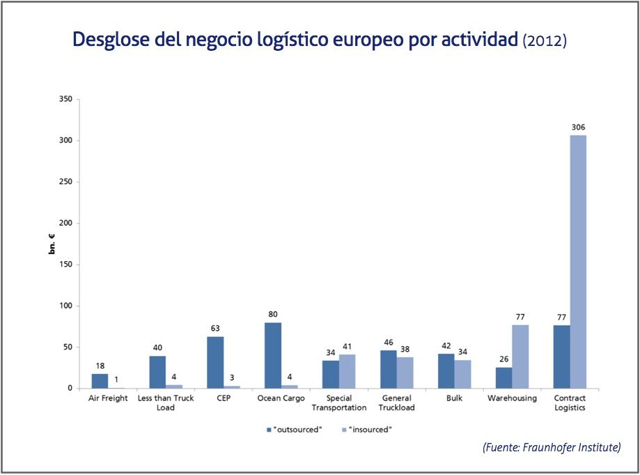 Los servicios de Contract Logistics son la especialidad que mayor volumen de negocio ha generado en Europa en el 2012, con 383.000 millones de euros. Esta cifra supone algo menos de la mitad de toda la facturación del sector, un 41%.