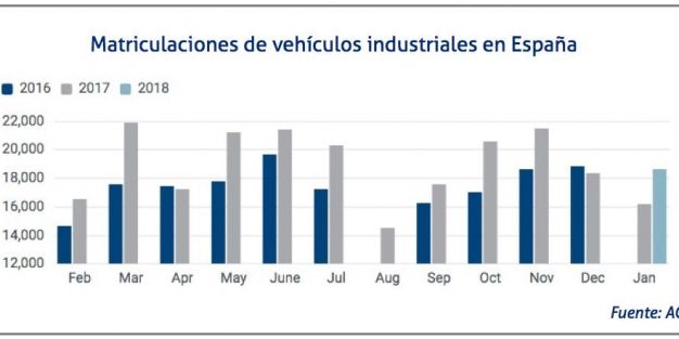 En el segmento de los vehículos industriales de más de 3,5 toneladas, se han registrado un total de 30.835 unidades en el primer mes de 2018, lo que supone un ascenso del 8,6%. La demanda ha repuntado en cuatro de los cinco mercados principales.