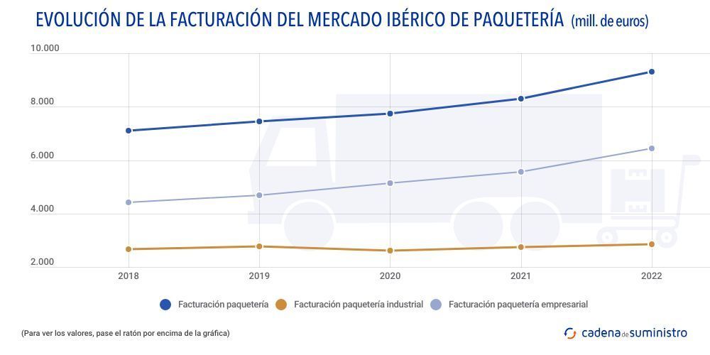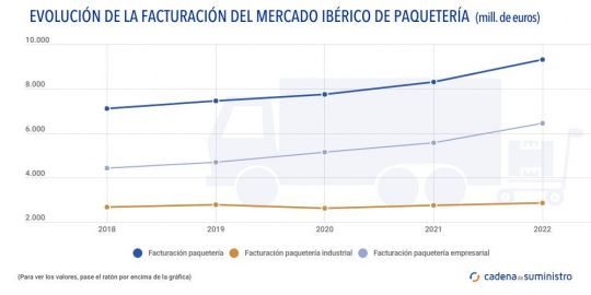 Con más detalle, el mercado de paquetería empresarial se ha incrementado un 4,5%, hasta los 6.450 millones de euros, mientras que, por otra parte, la demanda de paquetería industrial ha crecido un 3,6%, para un total de 2.850 millones de euros.