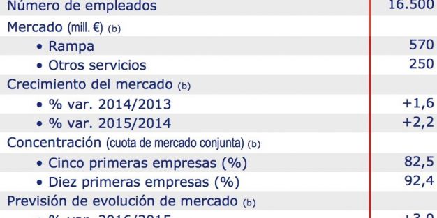 En lo que respecta a 2015, según el estudio sobre 'Servicios Aeroportuarios' del Observatorio Sectorial DBK, el volumen de negocio derivado de la prestación de servicios aeroportuarios a terceros se ha incrementado un 2,2%, alcanzando los 820 millones de euros.