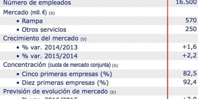 El sector presenta un creciente grado de concentración de la oferta, de forma que los cinco primeros operadores reunían en 2015 una participación conjunta del 82,5% sobre el mercado total. La cifra se eleva al 92,5% al considerar los diez primeros.