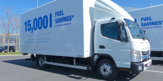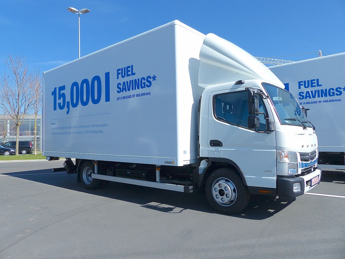 El Fuso Canter ha visto ampliada su gama de modelos con un paquete Ecofficiency de serie y homologación Euro 5b+ o Euro VI. Los ecológicos camiones Canter Eco Hybrid para los mercados europeos se fabrican en la planta de Tramagal, Portugal.