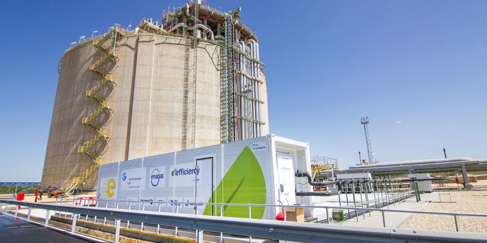 Este complejo puede funcionar con energía frigorífica ecológica y a bajo coste, gracias al proceso de regasificación del GNL que se produce en la planta de Enagás en el puerto onubense, lo que puede suponer hasta un 55% de ahorro energético y una disminución del 90% de las emisiones de CO2.