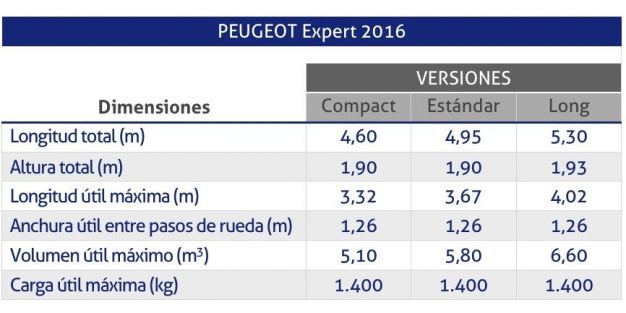 El nuevo Peugeot Expert está disponible en tres largos de carrocería.