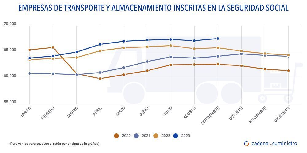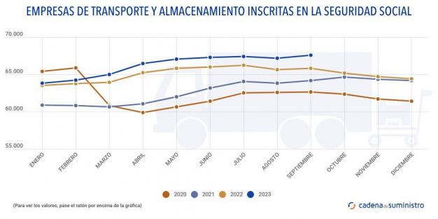 Durante el pasado mes de septiembre ha crecido el número de empresas de transporte y almacenamiento inscritas en la Seguridad Social .