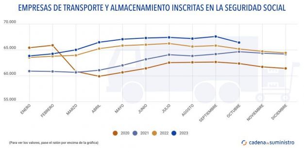 Durante el pasado mes de octubre ha crecido el número de empresas de transporte y almacenamiento inscritas en la Seguridad Social.