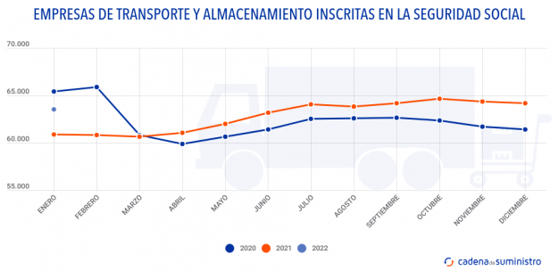El número de empresas de transporte y almacenamiento inscritas en la Seguridad Social inicia 2022 a la baja, como terminó 2021.