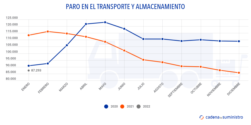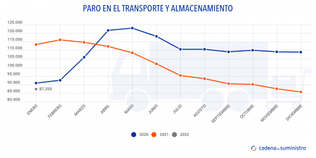 Los datos de paro en el sector logístico y de transporte comienzan 2022 con incrementos, como suele ser habitual en el sector al inicio de cada ejercicio, aunque con registros inferiores a los del primer mes de 2021.