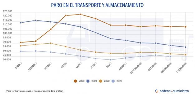 De la cifra total de parados en el sector logístico y de transporte, según las últimas estadísticas oficiales, 39.347 parados corresponden al transporte terrestre, un 0,75% menos que hace un mes, y 2.412 al transporte marítimo, un 0,92% mensual más.