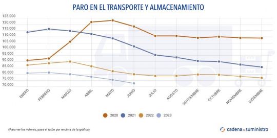 El paro en la logística y el transporte ha mantenido su tendencia a la baja durante el pasado mes de junio.