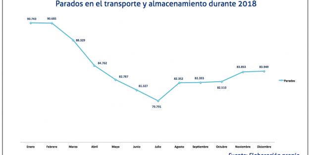 El sector español de transporte y almacenamiento contaba en diciembre con 83.949 parados, un 0,11% más que en noviembre de este mismo año, pero un 4,44% menos que en diciembre del año pasado.