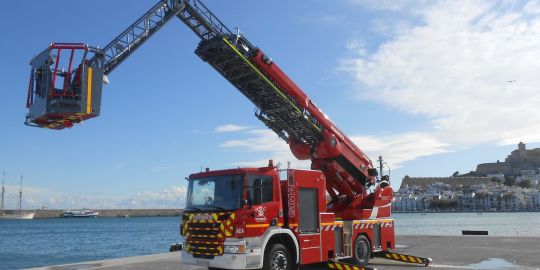 El Consejo Insular de Ibiza ha presentado recientemente un camión de bomberos autoescala de 32 metros para el parque de bomberos de la isla, con la intención de empezar a sustituir los vehículos de la flota que han agotado su vida útil por otros más modernos.