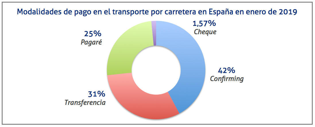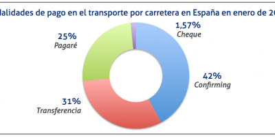 Los resultados del primer mes del año apuntan a que los medios de pago preferidos por los clientes de los transportistas son el confirming, con un 42%, seguida por la transferencia, con un 31%, el pagaré, con un 25%, y finalmente el cheque, con un 1,57%.