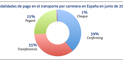 Los resultados del quinto mes del año apuntan a que los medios de pago preferidos por los clientes de los transportistas son el confirming, con un 39%, seguida por la transferencia, con un 35%, el pagaré, con un 25%, y finalmente el cheque, con un 1%.