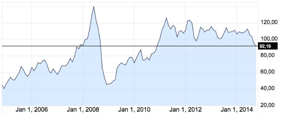 Por su parte, el precio del crudo Texas, de referencia en EEUU, se situaba en los 90,96 dólares por barril desde los 90,74 de la apertura, en niveles mínimos desde mayo de 2013.