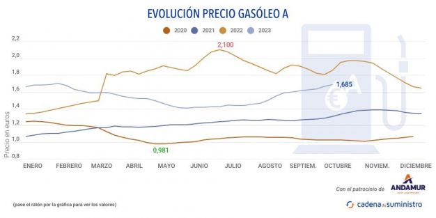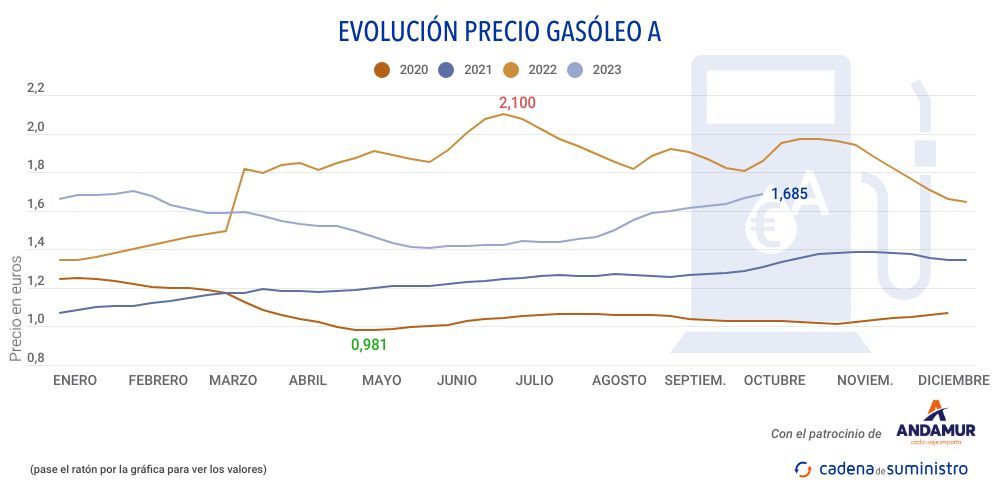 Ambos combustibles siguen una semana más por debajo del importe que marcaban antes de la entrada en vigor de la ayuda que aprobó el Gobierno a finales de marzo de 2022, y que fue prorrogada por el Gobierno hasta finales de 2023 para el transporte profesional por carretera. No obstante, el descuento será de 10 céntimos por litro hasta el 30 de septiembre y de cinco céntimos hasta final de año.