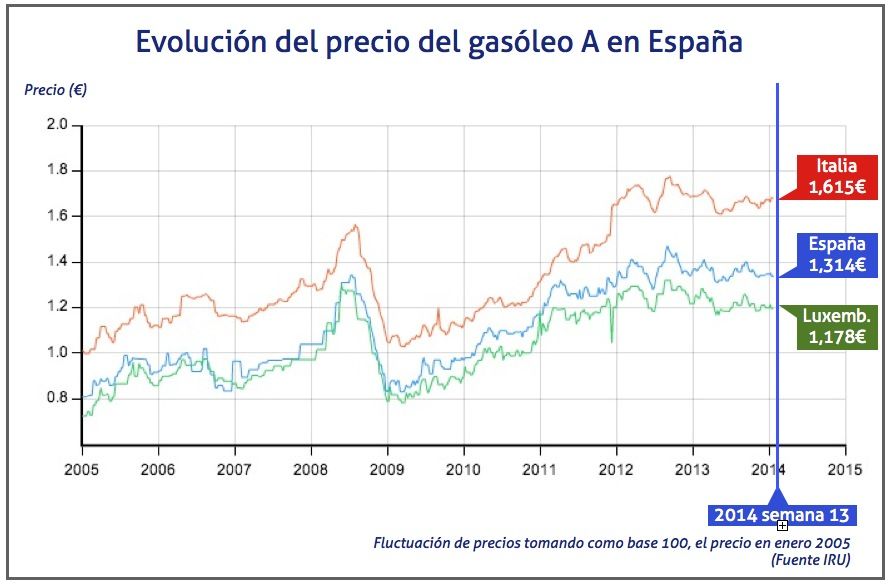 En concreto, el litro de este combustible se situó en los surtidores en 1,314 euros, un 3,1% por debajo de los niveles de enero y un 3,5% por debajo del precio marcado en la misma semana de 2013.