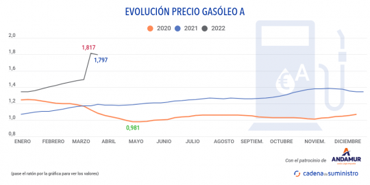 El informe también sitúa el precio de la gasolina en el país en 1,813 euros, un 1,68% por debajo de los 1,844 euros que se habían alcanzado durante la semana anterior.