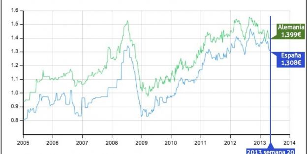 Con respecto a Europa, los carburantes siguen costando en España menos que en la media de la UE. Frente a Alemania el descenso es notable ya que el precio es de 1,39 frente a 1,308 de España. El menor nivel de precios finales en España con respecto a los países del entorno se debe a que el país, pese a las subidas del IVA, a los mayores impuestos autonómicos y a los nuevos gravámenes al biodiésel, sigue contando con una menor presión fiscal.