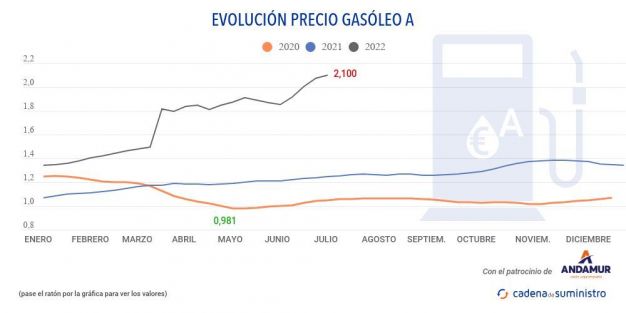 Conviene apuntar que el precio del barril de crudo Brent cotiza este jueves 30 de junio cerca de los 116 dólares, por encima de los 111 de la semana anterior.