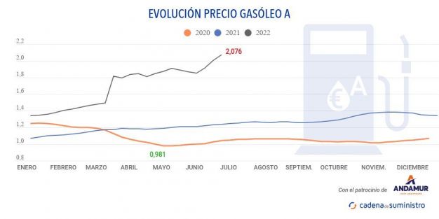 En cuanto al precio de la gasolina, que encadena ya su novena subida consecutiva, se encuentra actualmente en los 2,141 euros, tras registrar un incremento del 1,13% respecto a los 2,117 euros de la semana anterior. Esto supone igualmente un nuevo máximo histórico para este combustible.