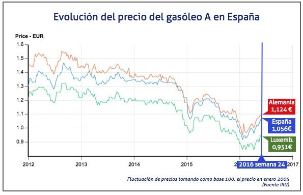 El precio del gasóleo ha logrado mantenerse esta semana, con un ligero repunte, inferior a los que se habían registrado en semanas anteriores. Así, entre el 6 y el 13 de junio, se ha situado en 1,056 euros frente a los 1,055 euros de la semana anterior.