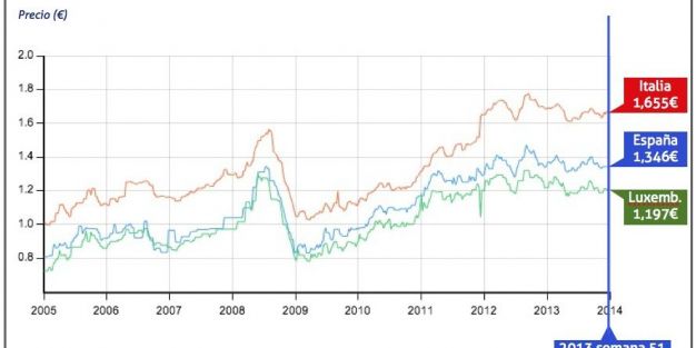 Por su parte,  el litro de gasolina cuesta en la actualidad 1,396 euros y se sitúa por debajo del umbral de los 1,4 euros, tras haberse mantenido por encima durante tres semanas. Su precio es ahora un 0,2% inferior al de comienzos de año y al de finales de 2012.