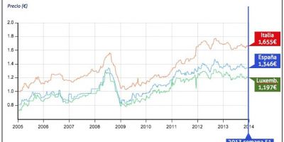 Sin embargo, el precio de 1,346 supone un 0,3% más que en la misma semana de 2012, mientras que el precio de la gasolina, que está en 1,396 euros, ha disminuido en un 0,2% con respecto al mismo período del año anterior.