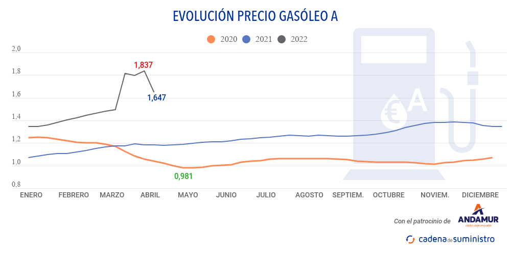 El litro de gasóleo se sitúa en los 1,647 euros, mientras que el de la gasolina ha caído hasta los 1,613, por las bonificaciones que han entrado en vigor el 1 de abril.
