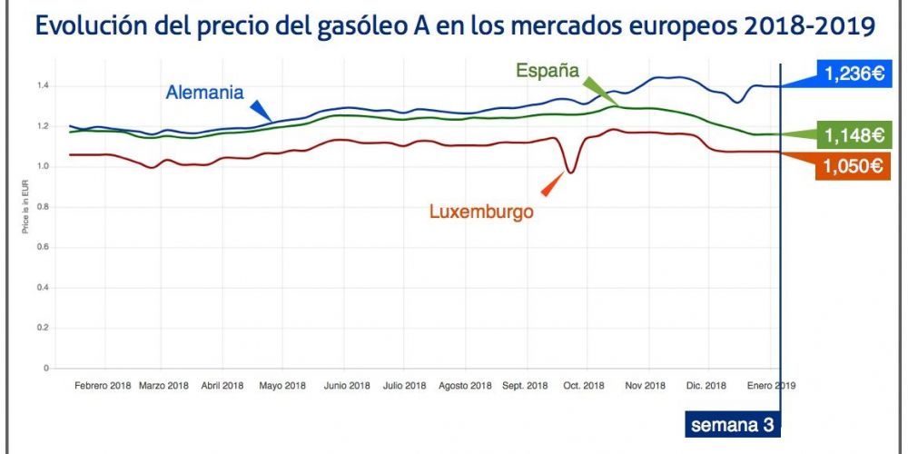 Por lo que respecta a los datos de otros países europeos, el precio más bajo en el gasóleo esta semana es el de Luxemburgo, con 1,050 euros por litro, mientras que Suecia ha registrado el precio más elevado, con 1,469 euros.