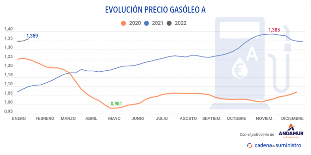 El precio del gasóleo se ha situado en los 1,359 euros entre el 4 y el 10 de enero, según los datos proporcionados por el Boletín Petrolero de la Unión Europea. Esto supone un incremento del 0,89% respecto a la semana anterior, cuando se encontraba en los 1,347.