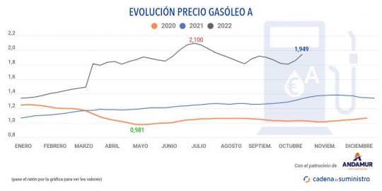 Conviene apuntar que el precio del barril de crudo Brent alcanza este jueves 20 de octubre prácticamente los 94 dólares, manteniendo el nivel de la semana anterior.
