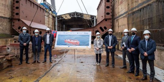 Con la puesta de la quilla del buque, se ha dado un nuevo paso en este proyecto, que ha recibido nueve millones de los fondos CEF, y está promovido por Enagás a través de su filial Scale Gas y por el operador Knutsen OAS Shipping AS.