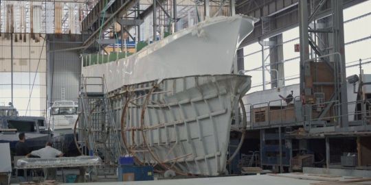 Esta semana se ha logrado no obstante un hito importante en la construcción al completarse la primera fase de la estructura con el desmoldeo del segundo casco del barco. A continuación, se procederá con la laminación del túnel, las cubiertas y el puente.