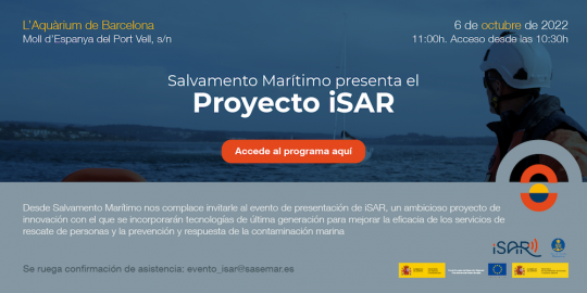 Salvamento Marítimo presentará el día 6 de octubre en Barcelona el proyecto de innovación iSAR, que aspira a incorporar tecnologías de última generación para la mejora de la eficacia de los servicios de rescate de personas, así como la prevención y respuesta de la contaminación marina.