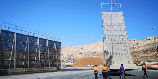 Las nuevas barreras, como las actuales, contarán también con un sistema de pulverización mediante nebulizadores de agua para crear un ambiente con la suficiente humedad que evite la emisión de partículas de polvo durante las operaciones de carga y descarga de productos a granel a la intemperie.