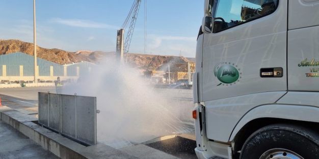 La Autoridad Portuaria de Almería ha puesto en servicio dos estaciones lava-ruedas en el Muelle de Pechina, que cuentan con capacidad para lavar las ruedas de más de 100 camiones al día.