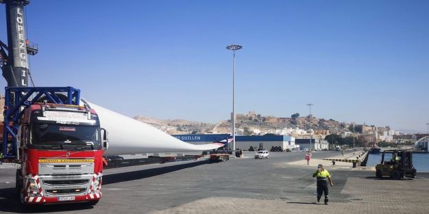 La primera de las seis palas de esta segunda remesa ya ha llegado a las instalaciones portuarias procedente del municipio granadino de Ferreira, donde Eblades Technology las fabrica.