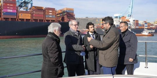 En su primera visita al puerto catalán como nuevo presidente de Puertos del Estado, Dapena ha podido conocer las instalaciones portuarias a través de una visita marítima y saludar a tres de los presidentes de las Asociaciones Portuarias de Barcelona, los miembros del Comité Ejecutivo y la presidenta del Comité de Empresa, Soraya Díaz.