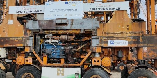 Mediante la iniciativa se ha transformado una straddle carrier de APM Terminals Barcelona para su uso con gas natural.