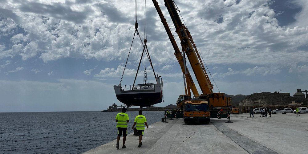 El puerto de Carboneras acoge la botadura de un buque de última generación para acuicultura