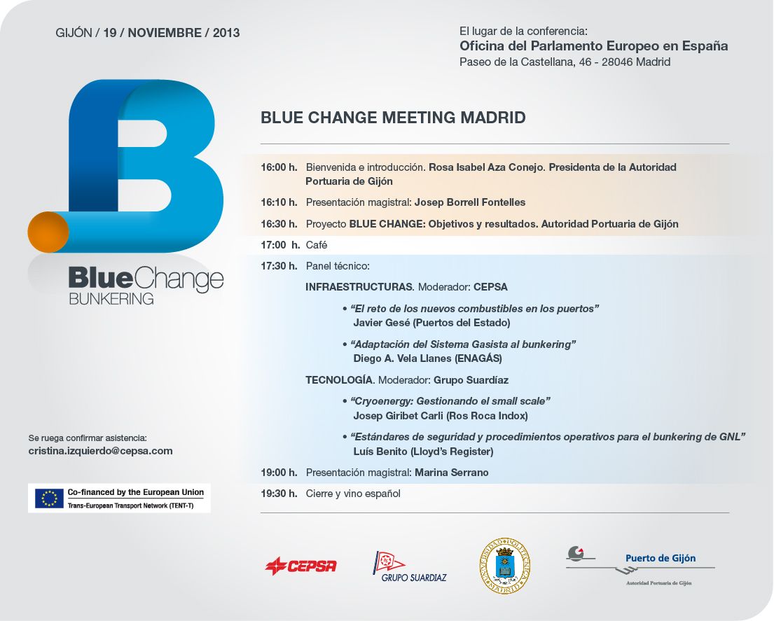 El proyecto "Blue Change" se desarrolla en el marco del programa de trabajo anual 2011 de la Red Trans-Europea del Transporte (TEN-T) y tiene por objetivo realizar los estudios necesarios para evaluar las posibilidades que ofrece el uso del Gas Natural como combustible, para atenuar el impacto medioambiental del transporte marítimo, mitigar los efectos de esta actividad sobre el cambio climático y disminuir los efectos de las actividades de transporte en el marco de los corredores que promueve la política europea.