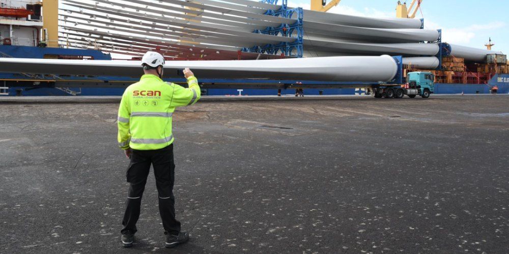 Las primeras piezas son palas de 83 metros de largo y 20 toneladas de peso cada una. Unos aerogeneradores se almacenarán en Granadilla antes de ser transportados al puerto de Laayoune en siete barcos costeros.